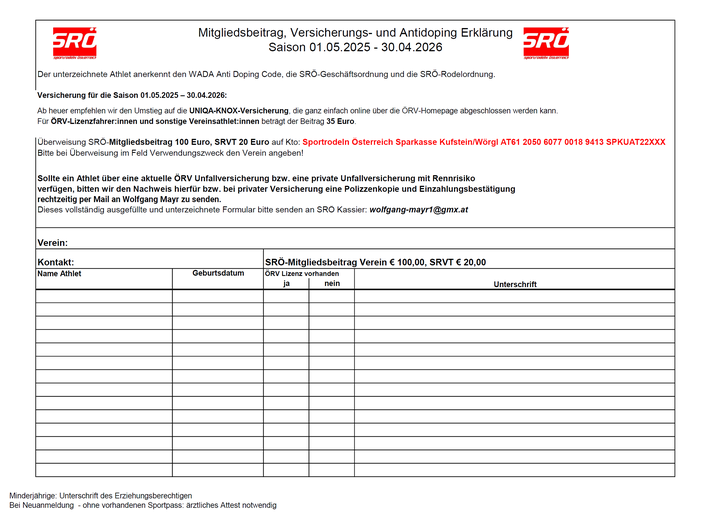 Hier finden Sie alle nötigen Dokumente des SRÖ.